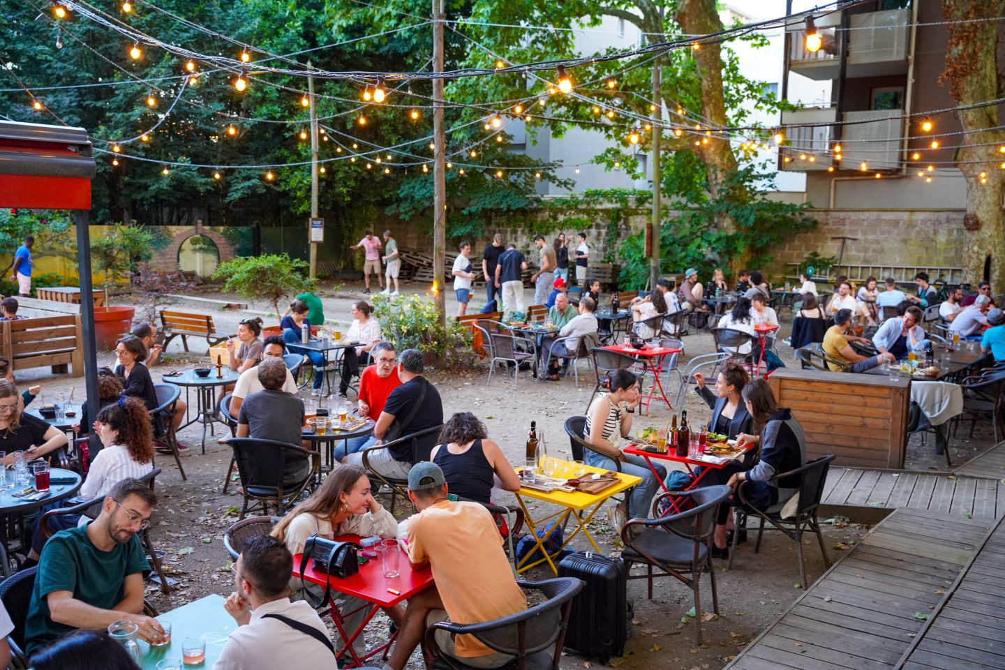 Bar et restaurant de produits locaux, jardin, concerts, spectacles, pétanque, platanes, prix accessibles, sourires et bonne humeur (oui, oui tout ça) dans un ancien clos bouliste de Villeurbanne.